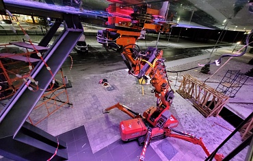 Вакуумный захват Arlifter GS-500 помог смонтировать необычное радиальное стекло в одном из бизнес-центров Петербурга.