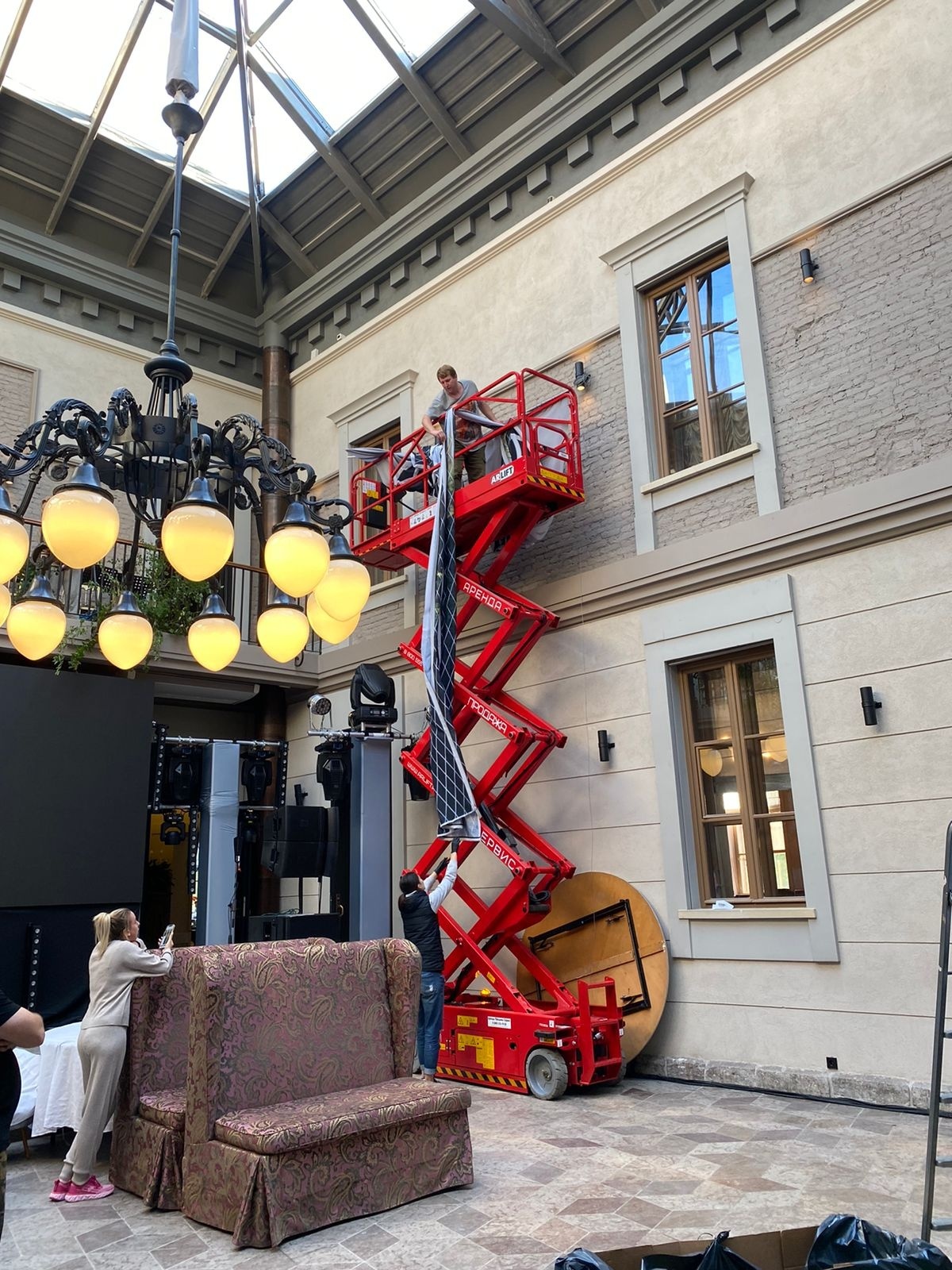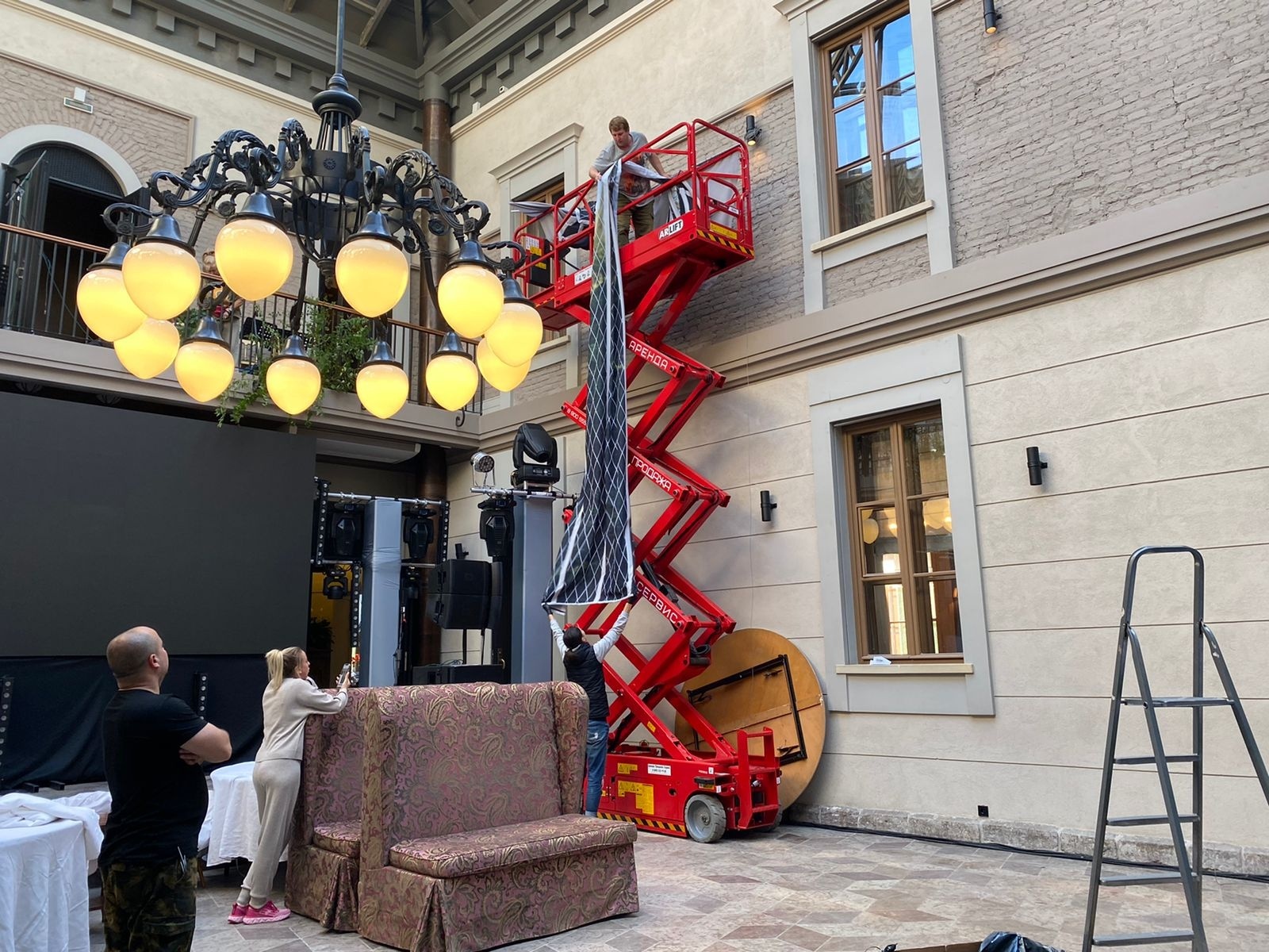 Наши объекты - Декор для частного мероприятия с помощью ножничных подъемников