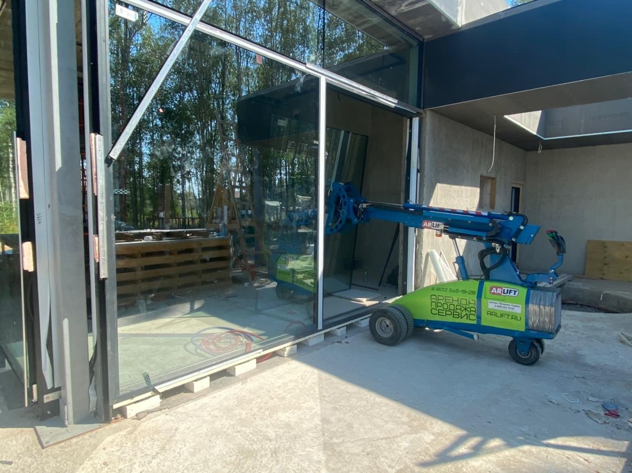 Стеклоробот Арлифт предназначен для монтажа гладких непористых материалов, таких как стекло, металл, камень, плиты и даже дерево. Компактная и маневренная техника легко и быстро поднимает и перемещает груз, отлично подходит для остекления веранд, фасадов, витрин. Главной особенностью оборудования является то, что стеклоробот может с миллиметровым ходом завести стекло внутрь и затем подогнать под проем. Аккумуляторные батареи позволяют проводить работы внутри помещения, а интеллектуальное управление контролирует расход заряда и нагрузку системы вакуумного захвата.