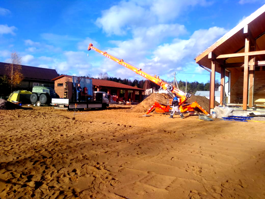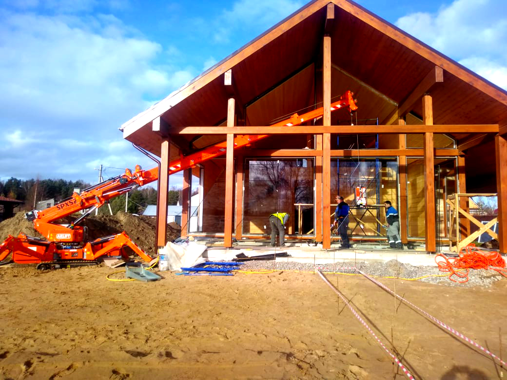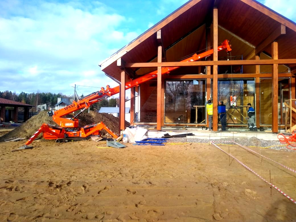 С помощью вакуумного захвата ARLIFTER GS-500 и мини-крана SPX527CDH производилось остекление коттеджа, площадь которого более 400 квадратных метров.
