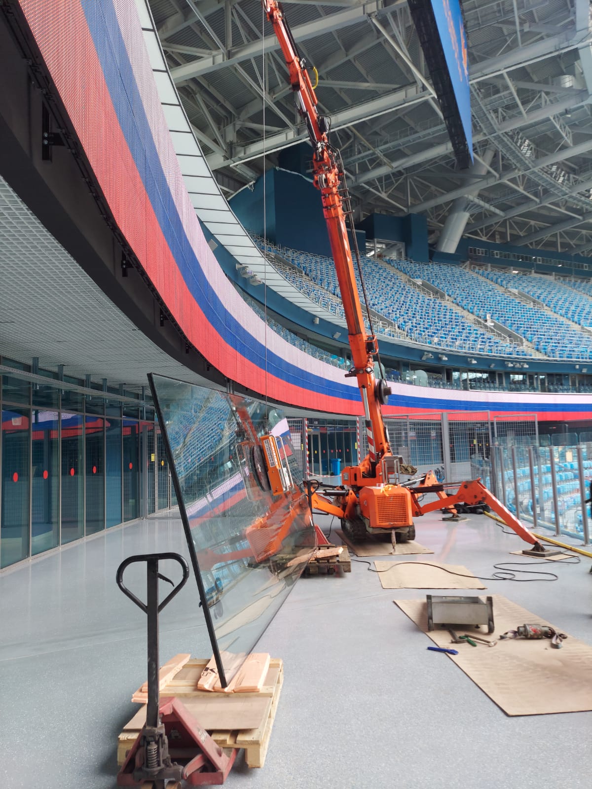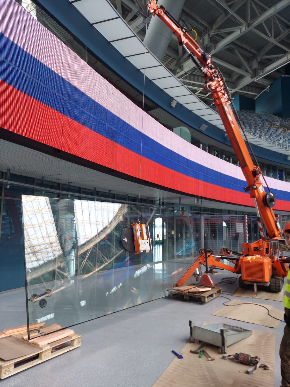 Так, при ремонте стеклянного ограждения в закрытом помещении мини-кран Арлифт SPX527 и вакуумный захват Arlifter GS-850 помогли заменить стеклопакет весом около 700 кг.