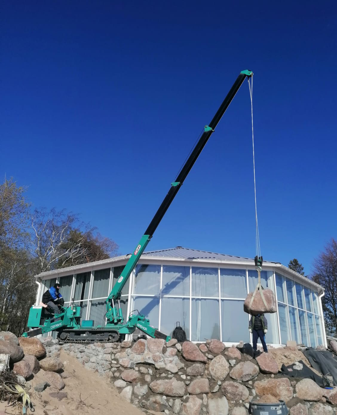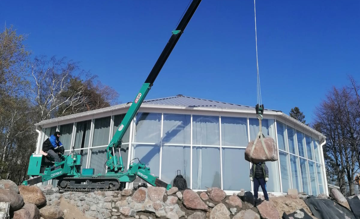 Мини-краны Арлифт — уникальное оборудование, предназначенное для решения разнообразных задач, начиная от монтажа опалубки на строительной площадке, заканчивая ландшафтными работами. В одном из пригородов Санкт-Петербурга для благоустройства территории ресторана использовали мини-кран Арлифт МС-405. Компактная и надежная техника создана специально для различных манипуляций с грузом до 4 тонн, в том числе и для перевозки тяжелых валунов.