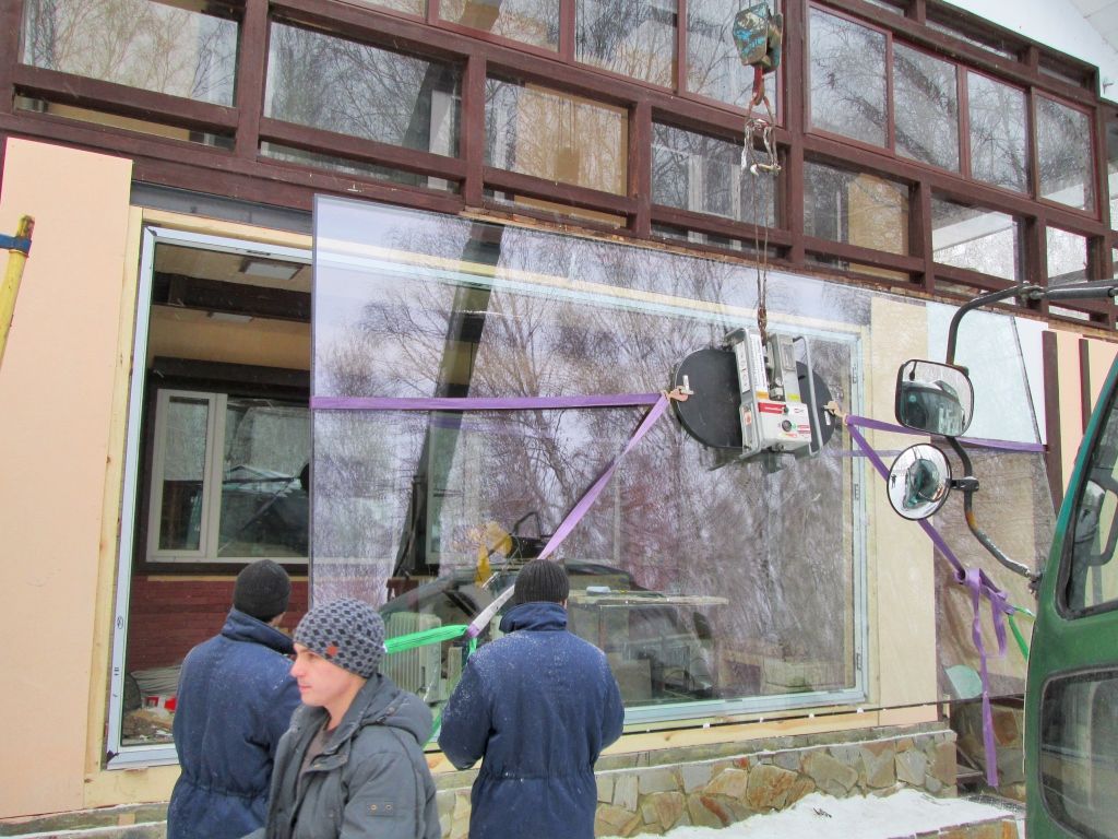 Монтаж стекла 4,8 х 2,5 метров (510 кг).