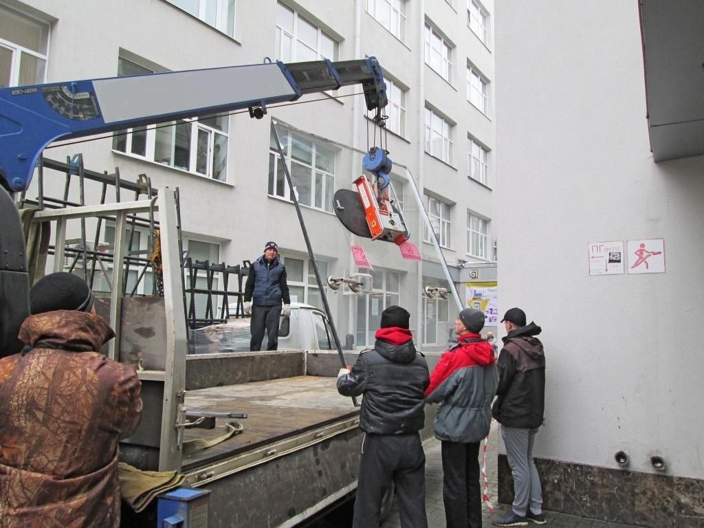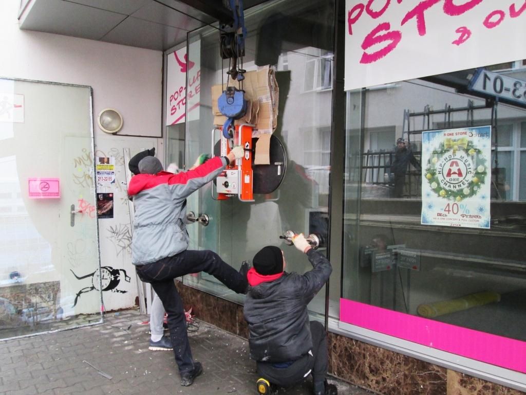Екатеринбург, ТРЦ "Гринго". Монтаж витринного стекла 2,5 х 1,5 (250 кг).