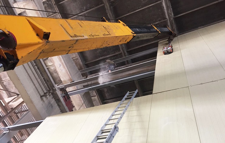 Вертикальный монтаж панелей длиной до 8 метров выполняла бригада из 4 человек, главная сложность заключалась в том, работы выполнялись на высоте более 10 метров.